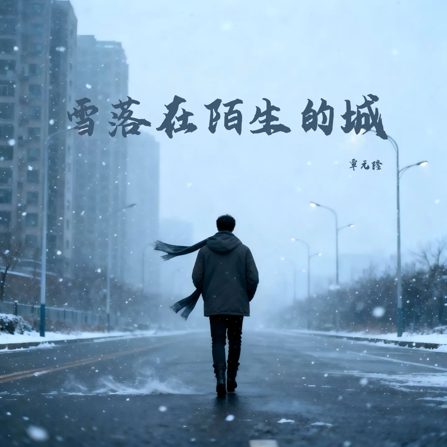 雪落在陌生的城景
