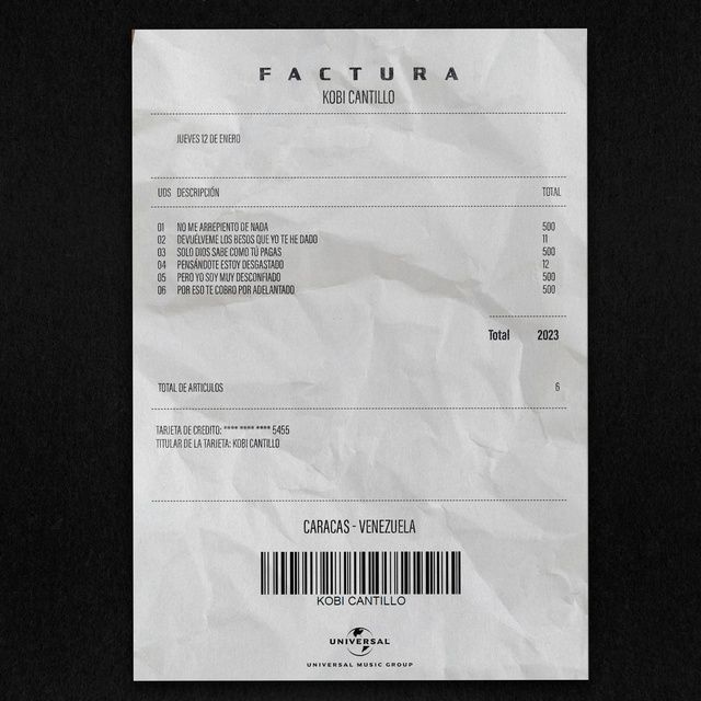 Bài hát factura do ca sĩ Kobi Cantillo thuộc thể loại Latin.