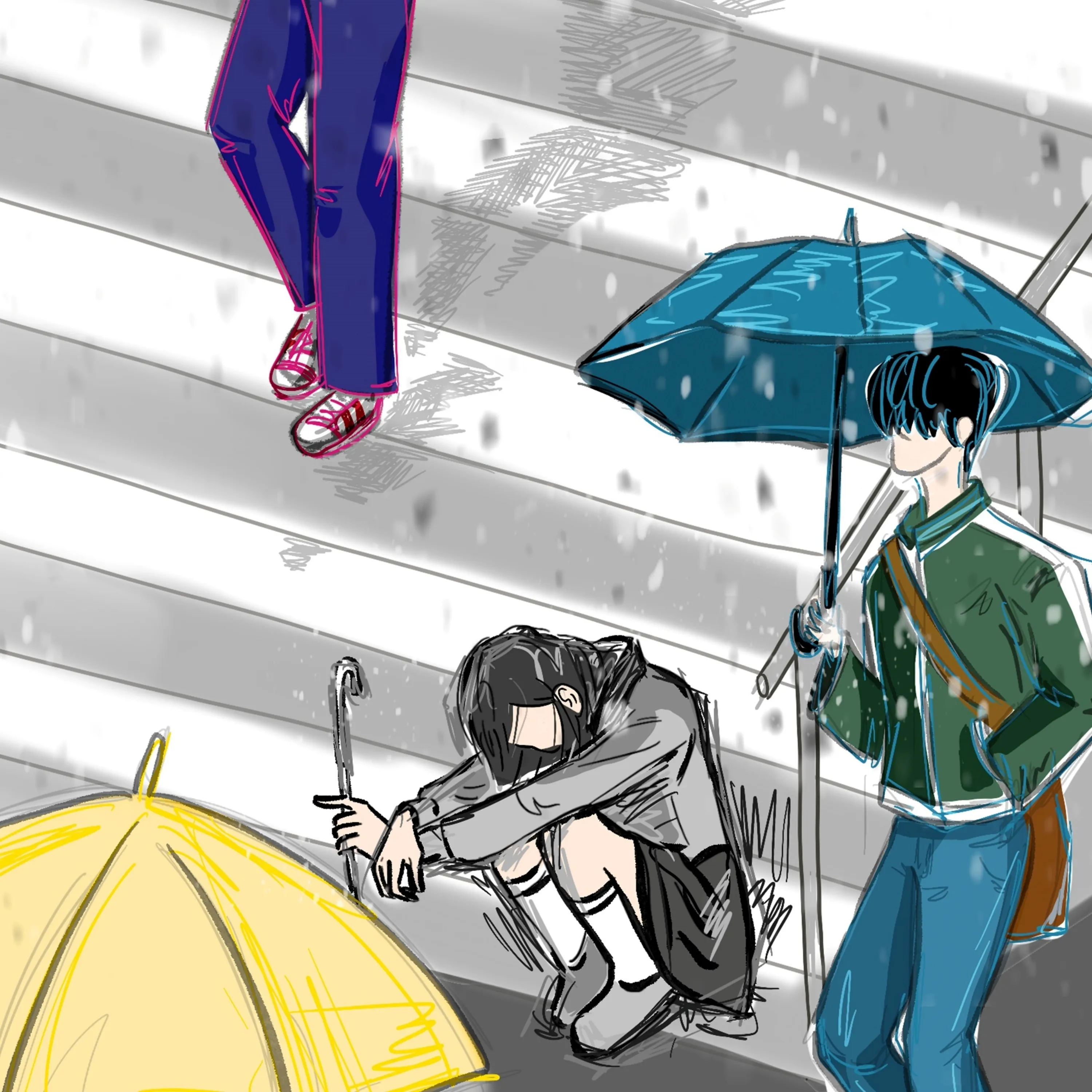and as her tears fell at his feet,