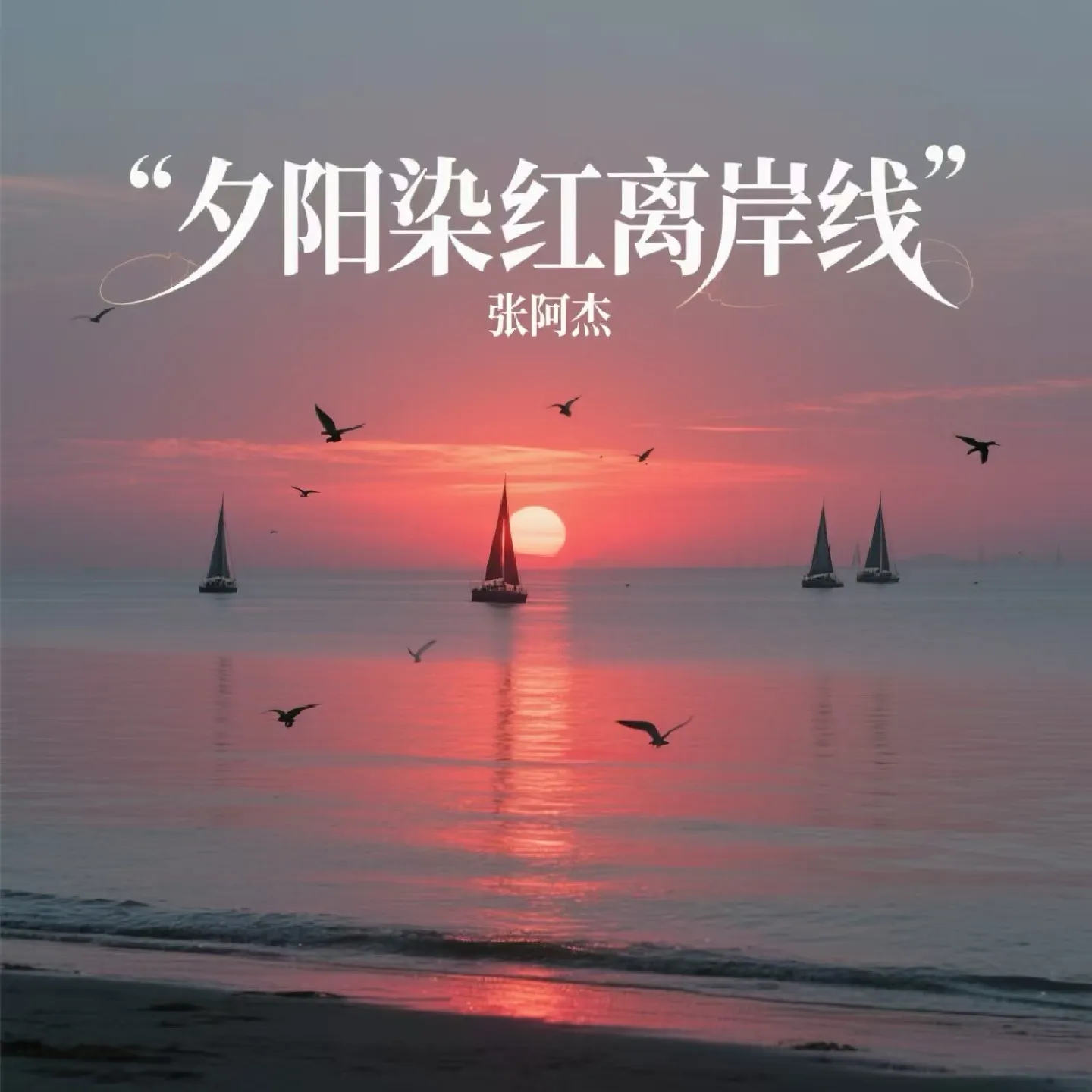 夕阳染红离岸线