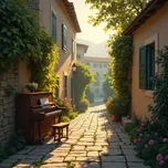 A warm, emotional piano melody echoing through a quiet village