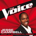 Bài hát What A Wonderful World - JesseCampbell. I see trees of green, red roses too. I see them blue for me and you. And I think to myself. What A Wonderful World. I see skies of blue and clouds of